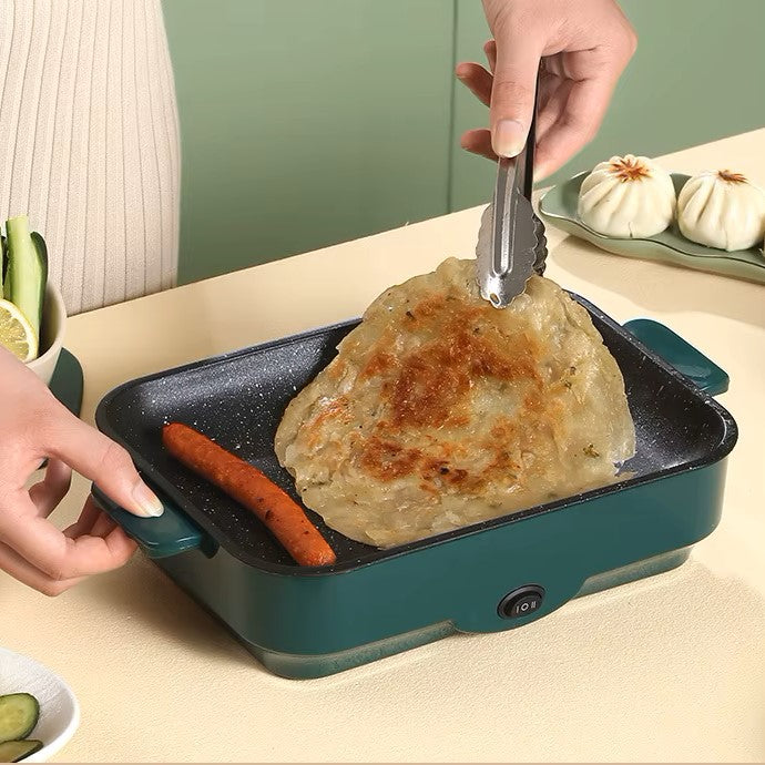 ✔ Surface de cuisson : Plateau carré sans revêtement, chauffe rapidement pour une cuisson uniforme